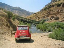 On the road to Bagdad, working. We drove from Denmark and back in the old car.