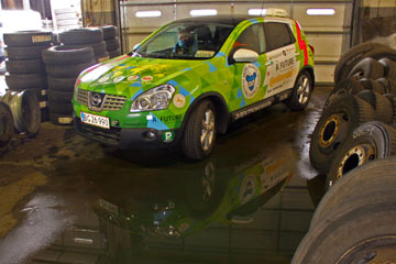 Jeg Grønne holder det snart ikke ud længere!. Jeg er dækket af vejsalt. Det svier over hele kroppen, under maven, på bagenden og over det hele. Og når Nina eller Hjalte rører ved mig bliver de helt hvide på tøjet. Jeg kører så blidt og lydløst som en engel, og så står de og siger at jeg aldrig været så snavset. Heldigvis har jeg stadig gode tykke slidbaner, så jeg kan stå fast i is og sne. Nina var derimod lige ved at vælte i går. Pludselig skøjtede hun af sted på et ben imens hun spjættede med armene. Slidbanerne under hendes sko er elendige, hun burde skifte til Continental dæk. Hjalte greb hendes computer, og hun fandt balancen igen. Det med at gå på sine egne ben er heller ikke populært i USA. Her kører man i bil fra vugge til grav.